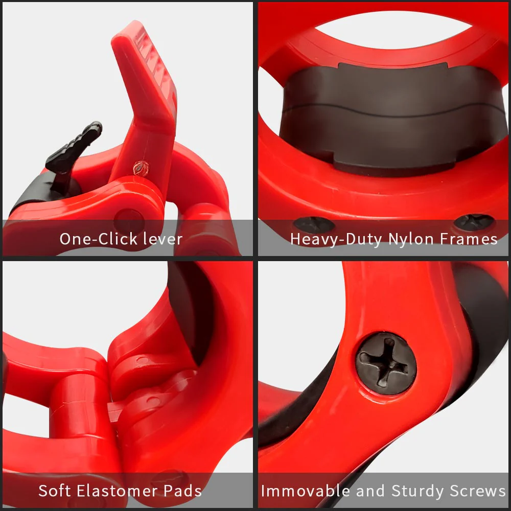Fastens to all standard Olympic bars with 2'' (50MM) sleeves. 10 times stronger grip than Olympic bar clamps (ABS Locking). Easy to use, one-hand install with spring-powered snap-latch design to keep you safe. Perfect for cast plate, cast grip plate and rubber grip plate, a must-have for bar workout.